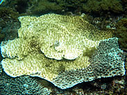 サンゴ骨格の凹凸がはっきりしていて、表面に藻が付着していることが多い。